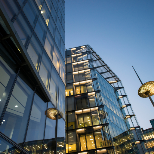 Contemporary architecture with glass facades and premium finishes